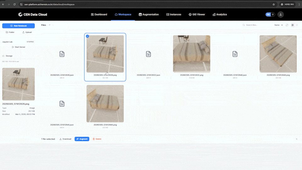 CEN3D 시뮬레이션 기반의 합성 데이터 생성 과정을 데모 버전으로 먼저 확인하실 수 있습니다.