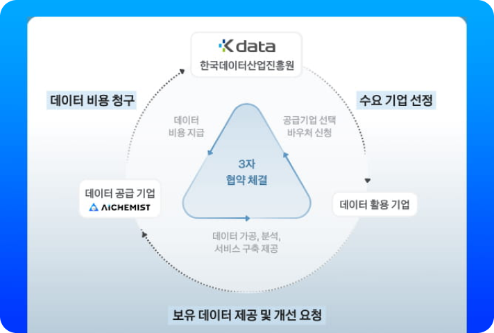 AIchemist는 데이터 바우처 공식 공급기업으로 AI 사용 시 요구되는 보안 및 규제 환경을 충족합니다. 기업의 현황 진단부터 전환·검증까지, 데이터 활용이 가능한 상태를 완성하는 전 과정을 지원합니다.